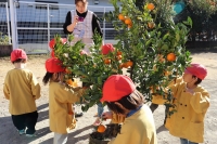 移動果樹園の方が来てくれて、みかんの苗木が園庭に!低い木だったので、小さい子から楽しむことができました。お天気も良く、いい経験が出来ました☆